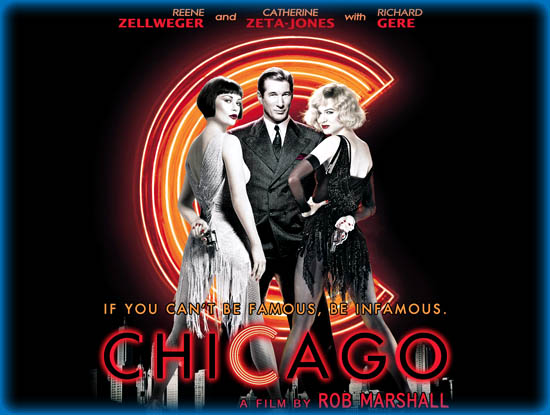 The big, glitzy, toe-tapping musical about two murderous women (Catherine Zeta-Jones and Rene Zellweger) trying to milk the infamy of their crimes while also not getting hanged for them. Based on the Broadway musical which is loosely based on a true story.
